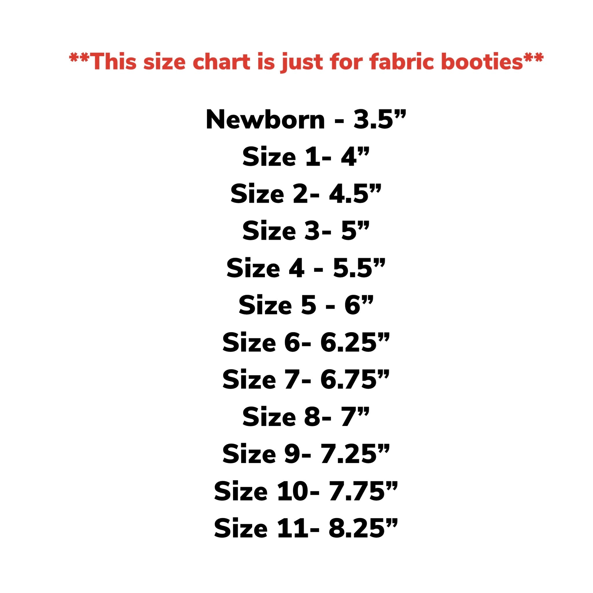 In order to get accurate sizing please measure the child's foot from heel to biggest toe and add .25"-.5" for growing room (personal preference).