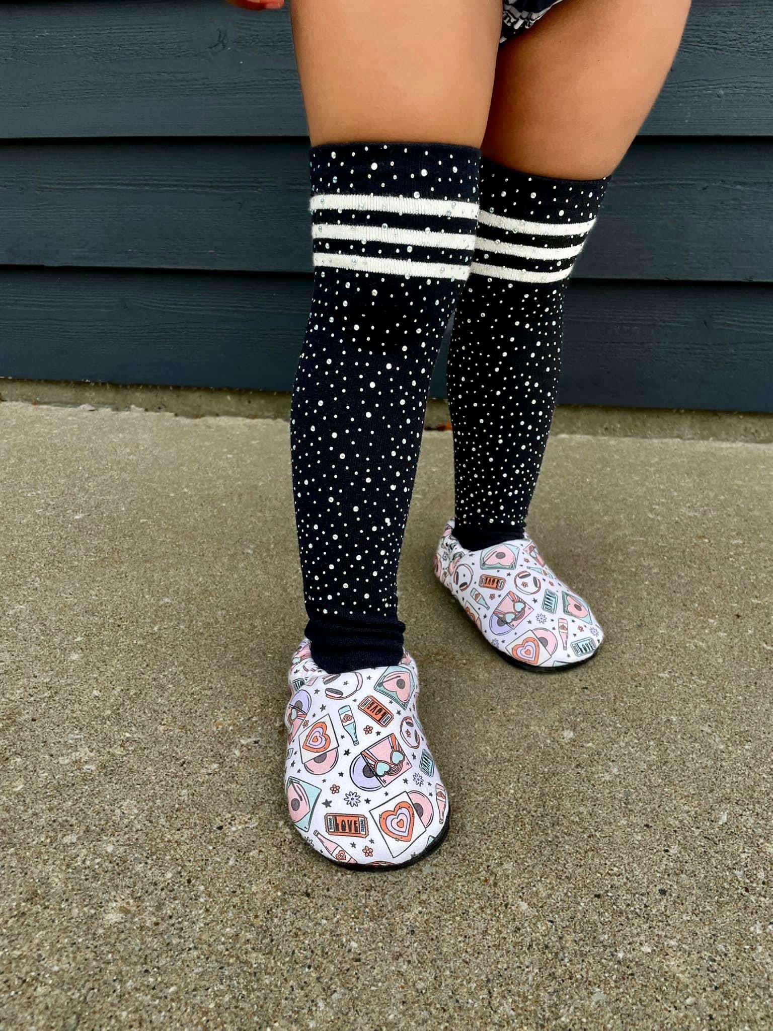 In order to get accurate sizing please measure the child's foot from heel to biggest toe and add .25"-.5" for growing room (personal preference).