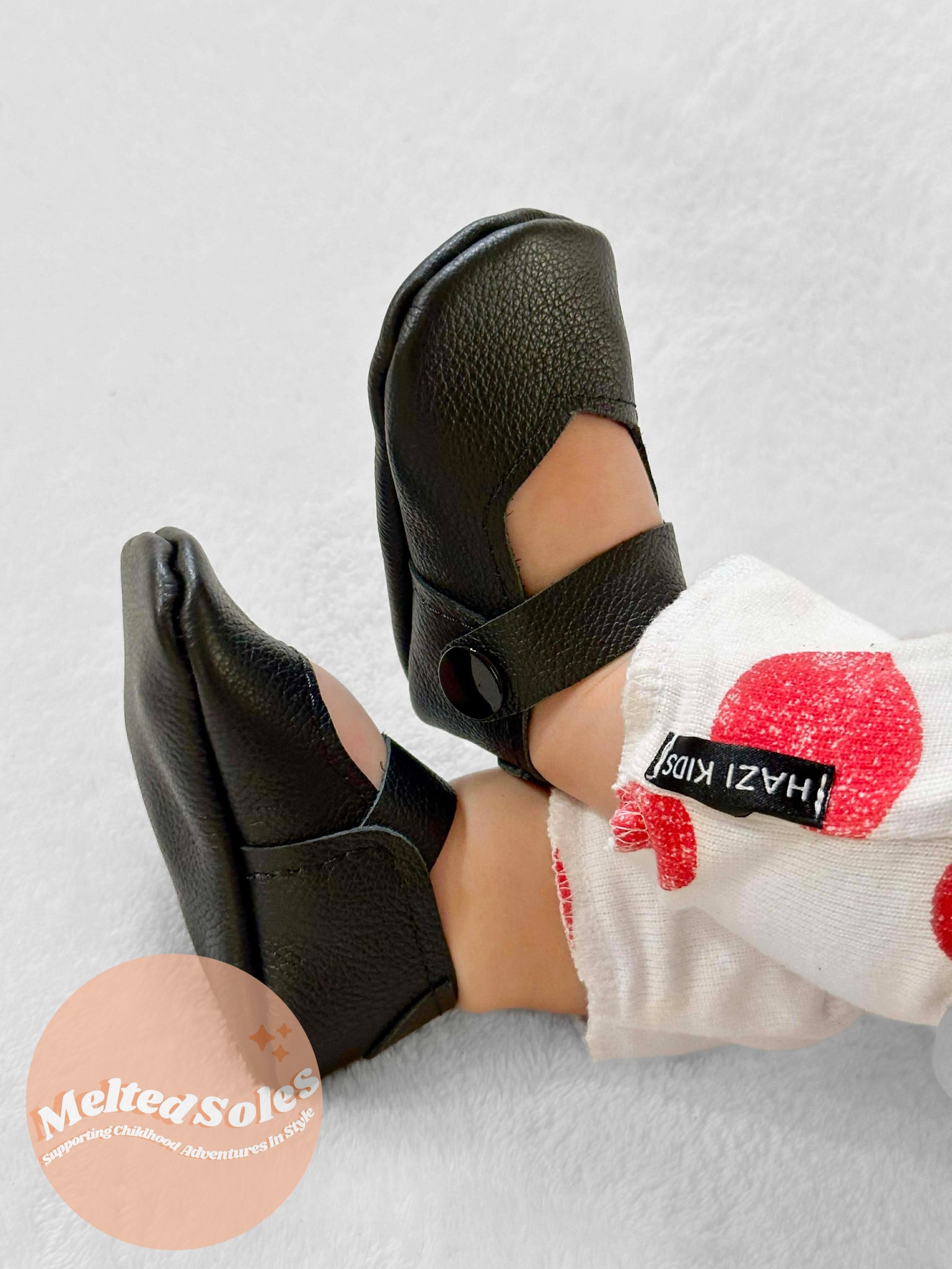 These Mary Jane shoes are 100% leather uppers, sizes 2 and up are made with soft ToughTek rubber soles that are water, slip and heat resistant. You can also opt into upgrading your soles to the harder rubber sole upgrade by searching for that listing and adding it to the cart. The harder rubber soles are also flexible and are sewn into the leather soles.