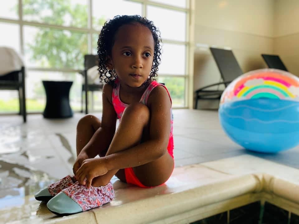 The water shoes are made with a performance fabric suitable to be fully submerged in water, running around on all surfaces, the beach etc... The fabric will protect their feet from UV.
